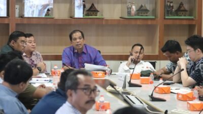 Gubernur Sumatera Utara (Sumut) Bobby Nasution memberikan semangat langsung kepada pelatih dan pemain PSMS Medan usai laga melawan Garudayaksa FC dalam pertandingan Liga 2 Zona Timur, di Stadion Utama Sumut, Jalan Sena, Kabupaten Deliserdang, Jumat (31/10/2025) malam.