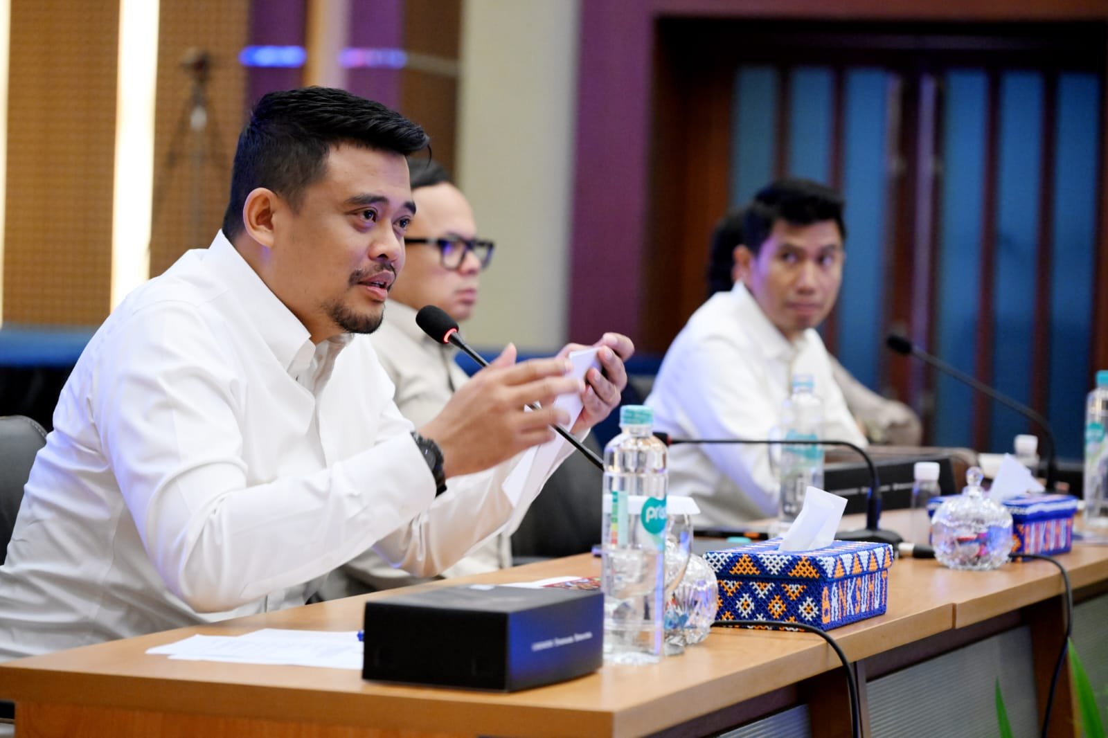 Hal tersebut disampaikan Bobby Nasution dalam pertemuan Kunjungan Kerja Komisi II DPR RI dalam rangka penyelenggaraan dan pengawasan Badan Usaha Milik Daerah (BUMD), di Kantor Pusat PT Bank Sumut, Jalan Imam Bonjol, Medan, Rabu (1/4/2026). Hadir dalam kegiatan tersebut Wakil Menteri Dalam Negeri (Wamendagri) Bima Arya Sugiarto, para bupati/wali kota se-Sumut serta sejumlah pejabat lainnya.