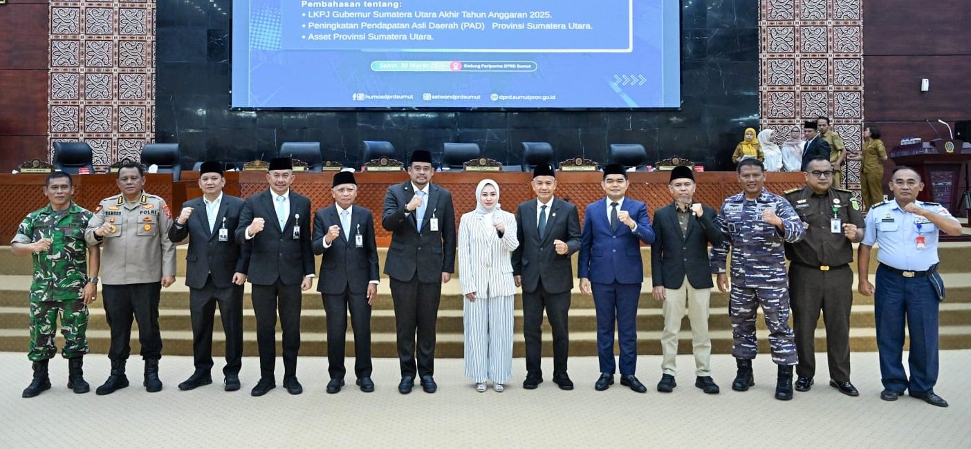 Rapat paripurna tersebut turut dihadiri Ketua DPRD Sumut Erni Ariyanti Sitorus, Wakil Gubernur Sumut Surya, serta Pj Sekdaprov Sumut Sulaiman Harahap. Hadir pula unsur Forkopimda Sumut, anggota DPRD Sumut, serta pimpinan organisasi perangkat daerah (OPD) di lingkungan Pemprov Sumut. (*)