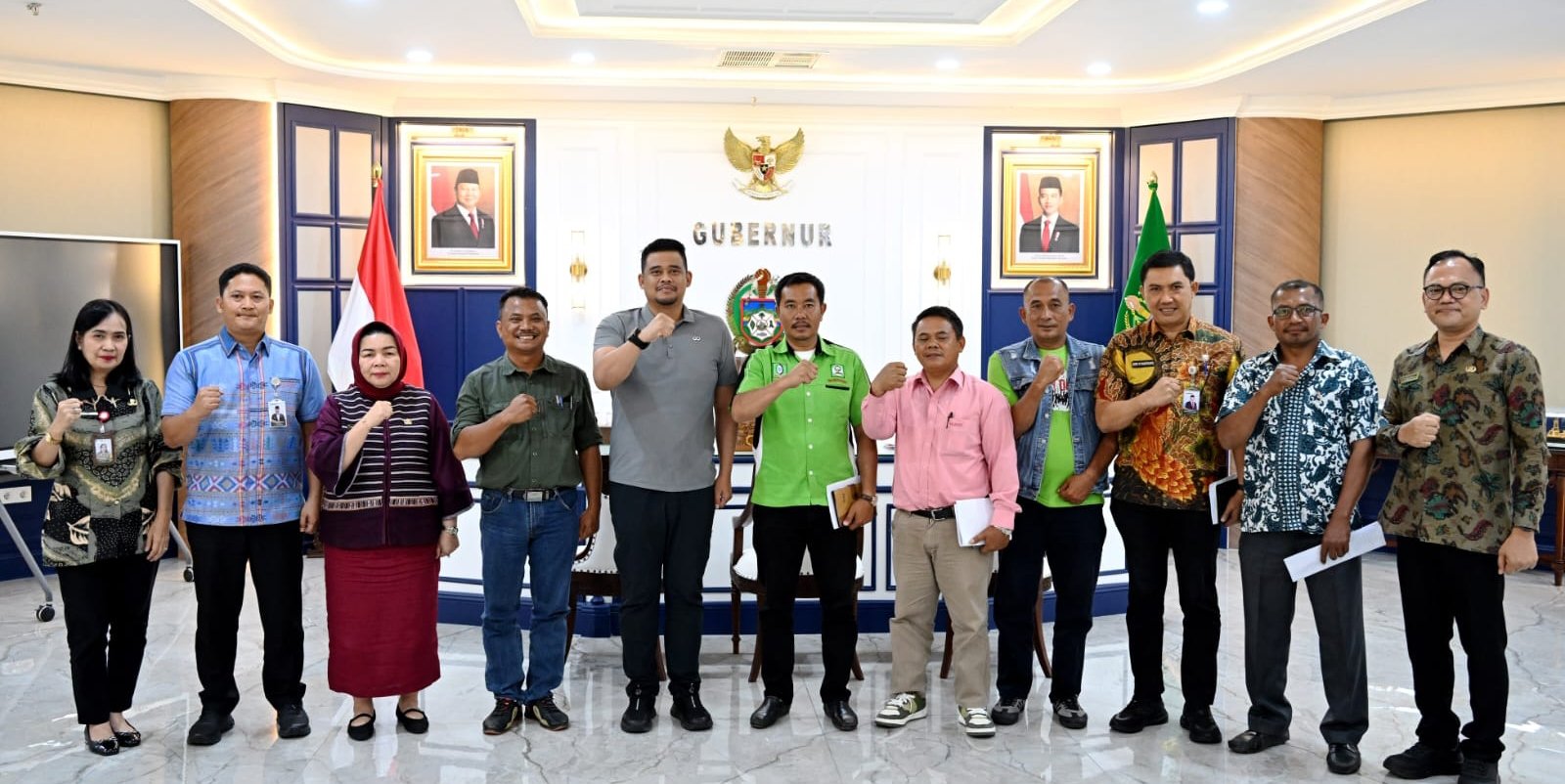 Gubernur Sumut Muhammad Bobby Afif Nasution menerima audiensi Serikat Pekerja Kehutanan di ruang kerjanya, Kantor Gubernur, Jalan Diponegoro, Medan, Kamis (26/3/2026). Dalam pertemuan tersebut, para perwakilan buruh menyampaikan sejumlah aspirasi.