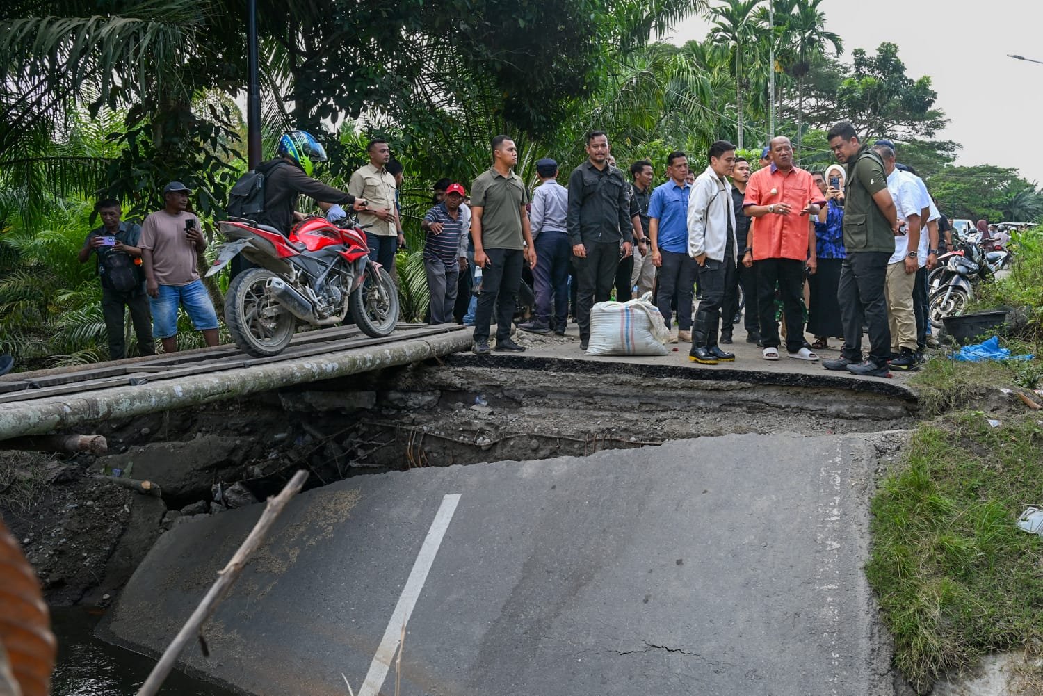 Dari Jatisari, Bobby melanjutkan peninjauan ke ruas jalan menuju Tanjungberingin yang putus akibat terjangan banjir beberapa waktu lalu. Jalan itu merupakan akses alternatif warga dari Tanjungpura dan Padangtualang menuju Stabat. Kondisi jalan yang runtuh diamati langsung untuk percepatan penanganan.