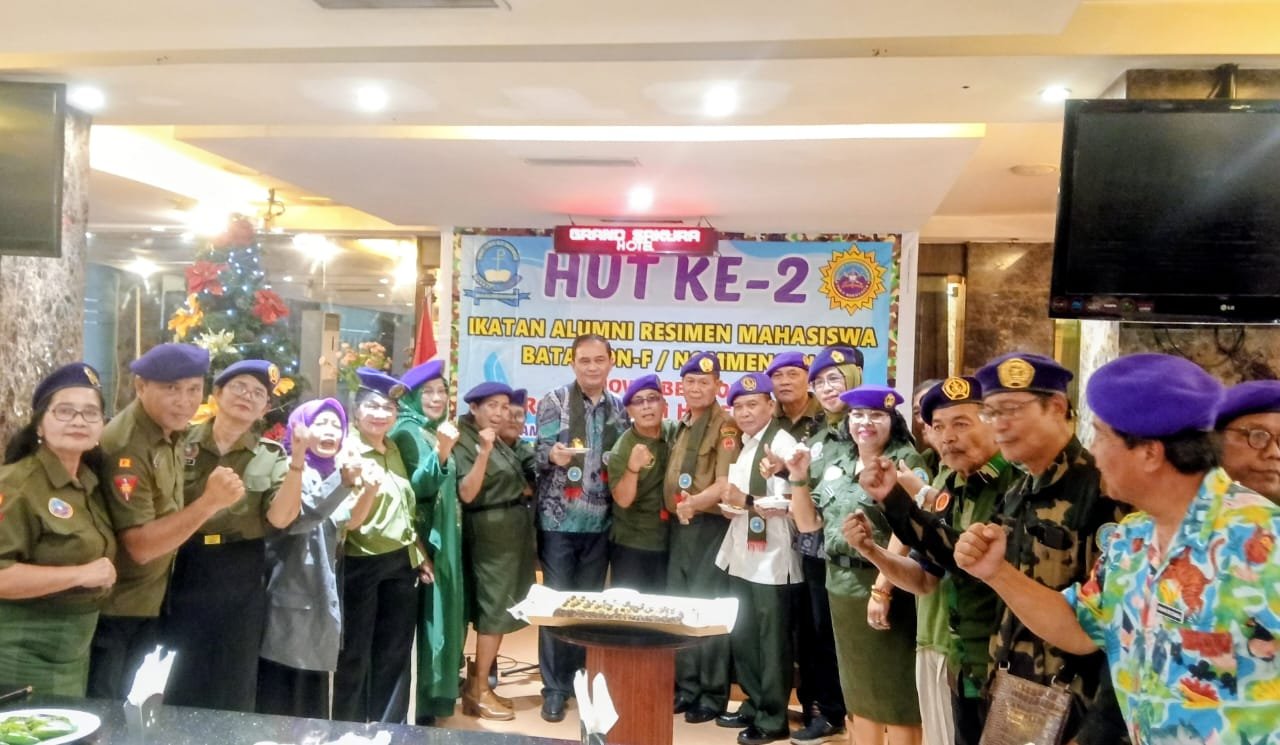 Ikatan Alumni (IKA) Resimen Mahasiswa (Menwa) Batalyon-F Universitas HKBP Nommensen Medan merayakan hari ulang tahun (HUT) ke-2 dengan penuh semangat kebersamaan dan pengabdian di Grand Sakura Hotel, Medan, Sabtu (1/11/2025).
