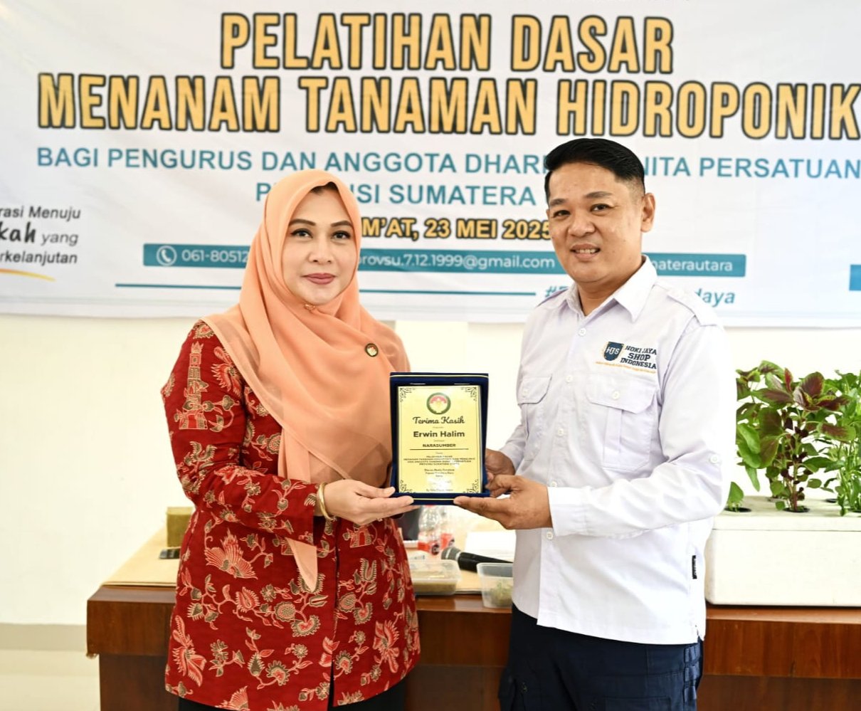 Dharma Wanita Persatuan (DWP) Provinsi Sumatera Utara (Sumut) mengadakan Pelatihan Dasar Menanam Tanaman Hidroponik Bagi Pengurus dan Anggota DWP Provinsi Sumut. Kegiatan itu bertujuan untuk mewujudkan kemandirian pangan keluarga