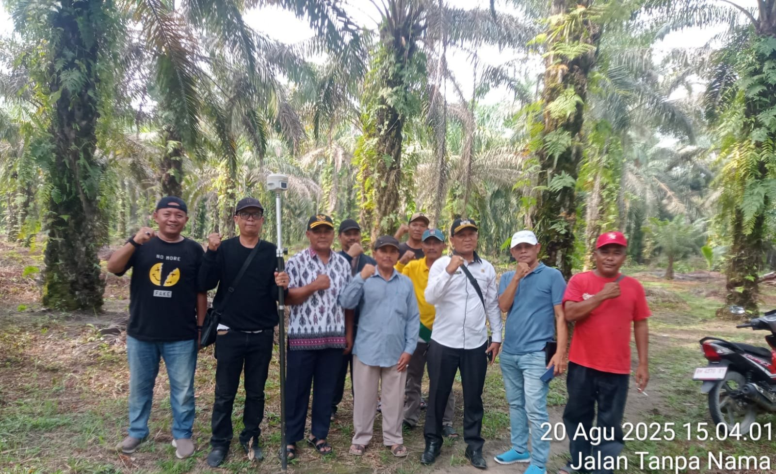 Ketua Satgas Nasional Himpunan Masyarakat Tani Merah Putih (HMTN-MP) Budi Ilham Nasution melakukan investigasi tapal batas Desa Mekar Jaya, Kecamatan Tambusai Utara, Kabupaten Rokan Hulu, Provinsi Riau, Rabu (20/8/2025).