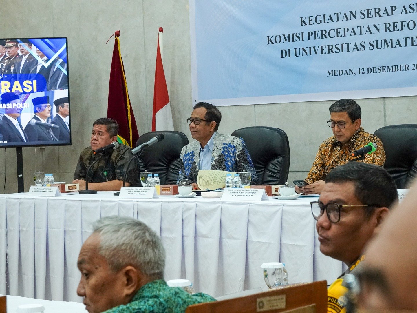 Aspirasi tersebut dihimpun Anggota Komisi Mahfud MD dan Ahmad Dofri dalam public hearing di Ruang Dewan Pertimbangan Fakultas Hukum Universitas Sumatera Utara (USU), Jumat (12/12/2025).