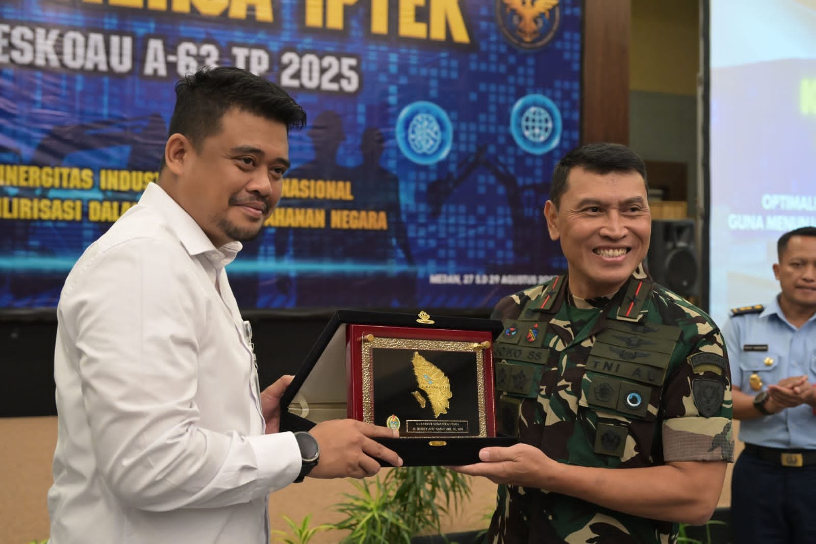 “Kita sedang mempersiapkan Indonesia Emas 2045, dan hilirisasi industri menjadi hal yang sangat penting, beruntung kami dipilih untuk Kuliah Kerja Praktek Sesko AU, kami harap Sumut berperan besar di industri nasional, terutama di bidang pertahanan,” kata Bobby Nasution di acara pembukaan Kuliah Kerja Iptek Pasis Sesko AU A-63 di Hotel Santika Premiere Dyandra Hotel & Convention, Jalan Kapten Maulana Lubis, Medan, Rabu (27/8/2025).