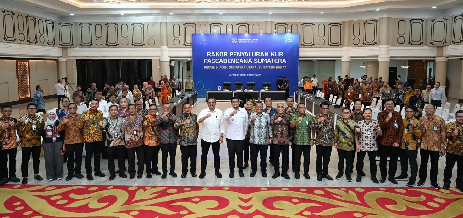 “Untuk itu, seminggu ini memastikan data dan angka yang tadi disampaikan, baik yang kami sampaikan, dari daerah, dari perbankan, dari Himbara, dan Kementerian, ini harus disinkronisasi, sebelum tanggal 31 sudah fix agar bisa langsung dirasakan oleh masyarakat,” kata Gubernur Bobby Nasution usai rapat koordinasi Penyaluran KUR Pascabencana Sumatera di Aula Raja Inal Siregar, Kantor Gubernur Sumut, Jalan Diponegoro, Medan, Rabu (11/3/2026).