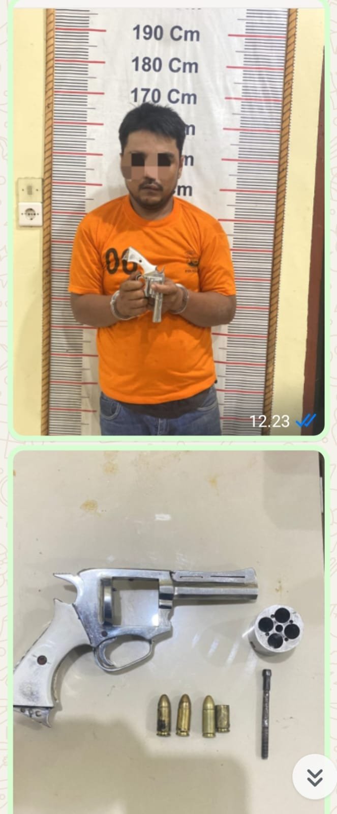 Tidak sampai delapan jam sejak kejadian, petugas langsung bergerak melakukan penangkapan terhadap seorang pria berinisial R (40), yang diketahui merupakan residivis kasus kepemilikan senjata api.