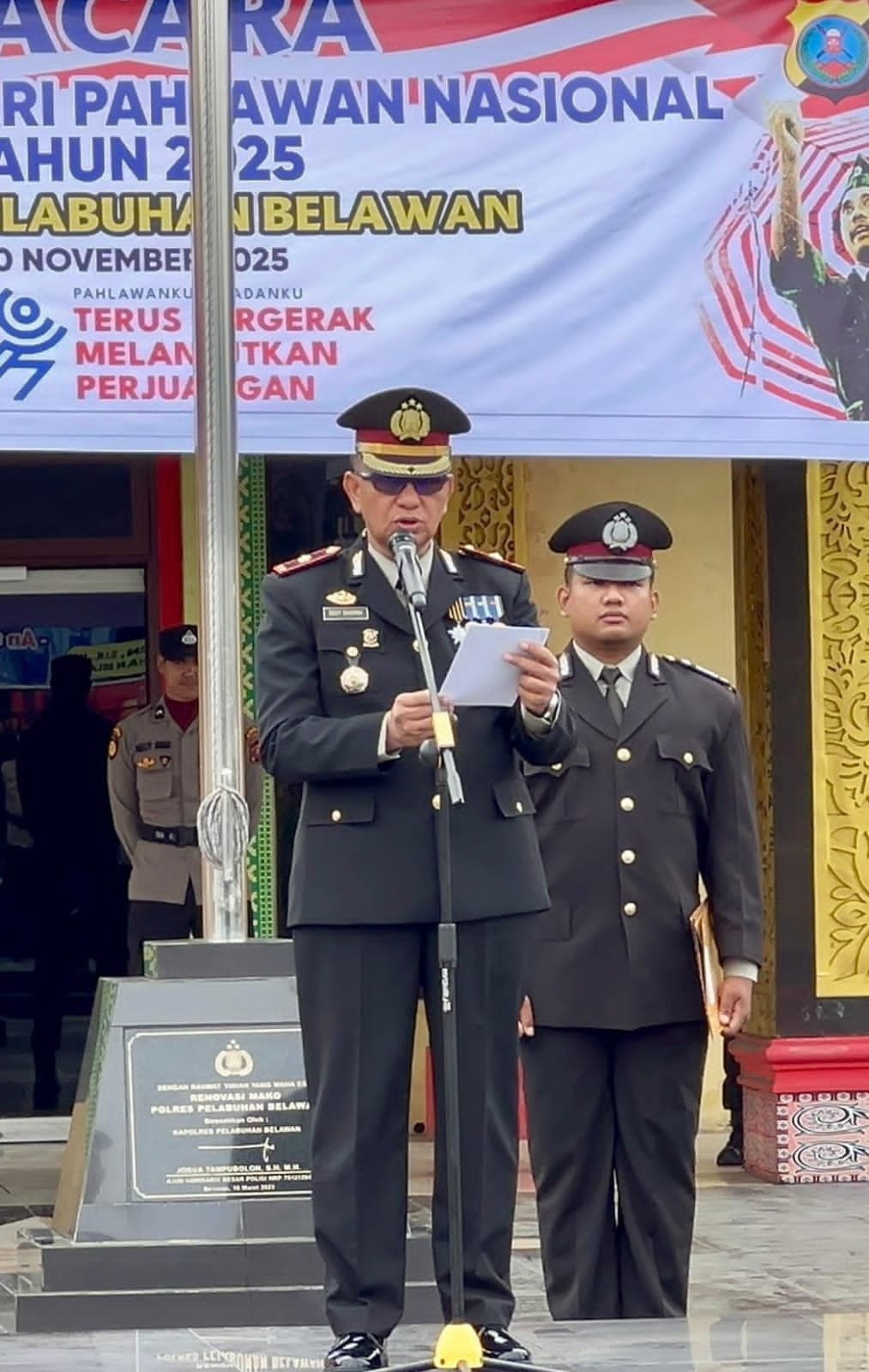 Dalam kegiatan tersebut, Wakapolres Pelabuhan Belawan, membacakan amanat resmi Menteri Sosial Republik Indonesia, yang intinya menyampaikan pesan mendalam mengenai makna perjuangan dan semangat kepahlawanan yang harus terus dijaga oleh seluruh anak bangsa.
