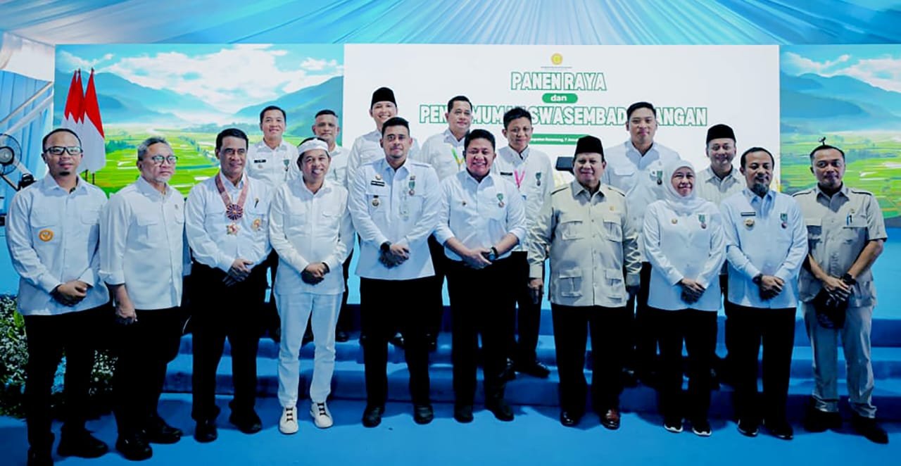 Gubernur Sumut Muhammad Bobby Afif Nasution menerima tanda kehormatan Satya Lencana Wirakarya dari Presiden Republik Indonesia Prabowo Subianto. Gubernur Bobby merupakan salah satu dari beberapa penerima tanda kehormatan dari Presiden pada Panen Raya dan Pengumuman Swasembada di Kecamatan Cilebar, Karawang, Jawa Barat, Rabu (7/1/2026).