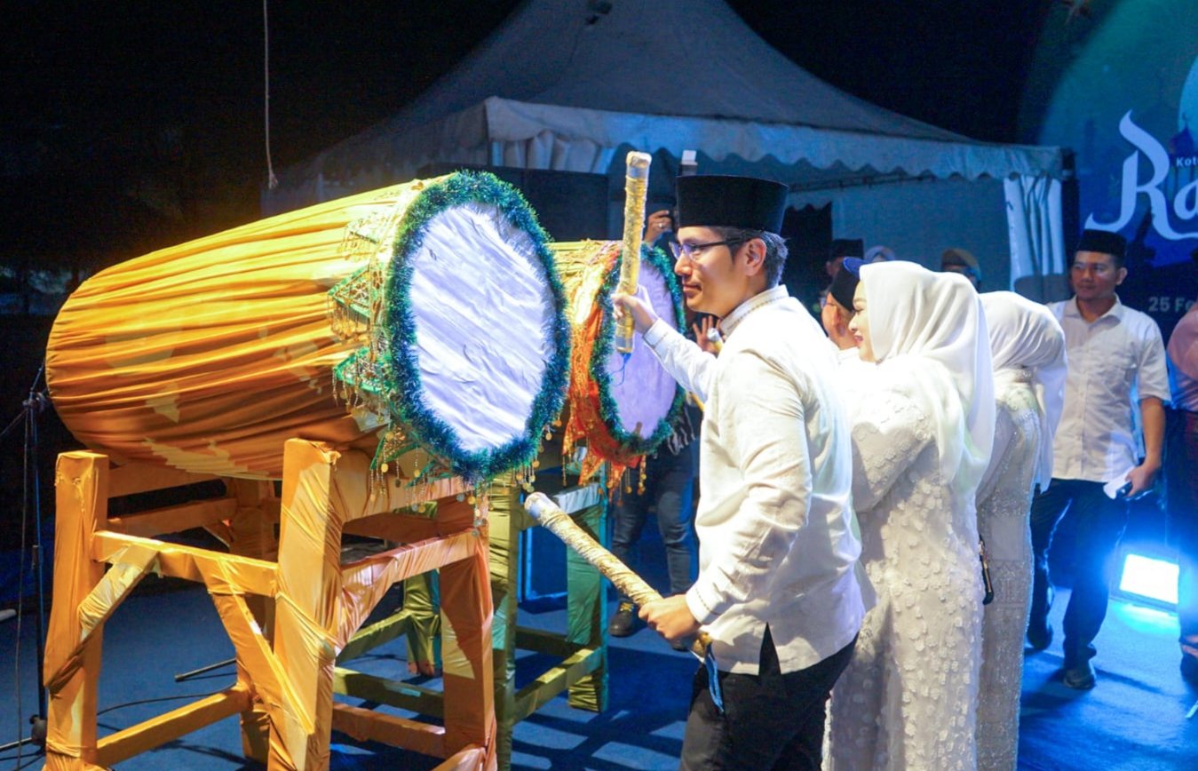Tabuhan bedug Wali Kota Rico Tri Putra Bayu Waas menjadi penanda diresmikannya gelaran Ramadan Fair XX di Taman Sri Deli Medan, Rabu (25/2/2026) malam.